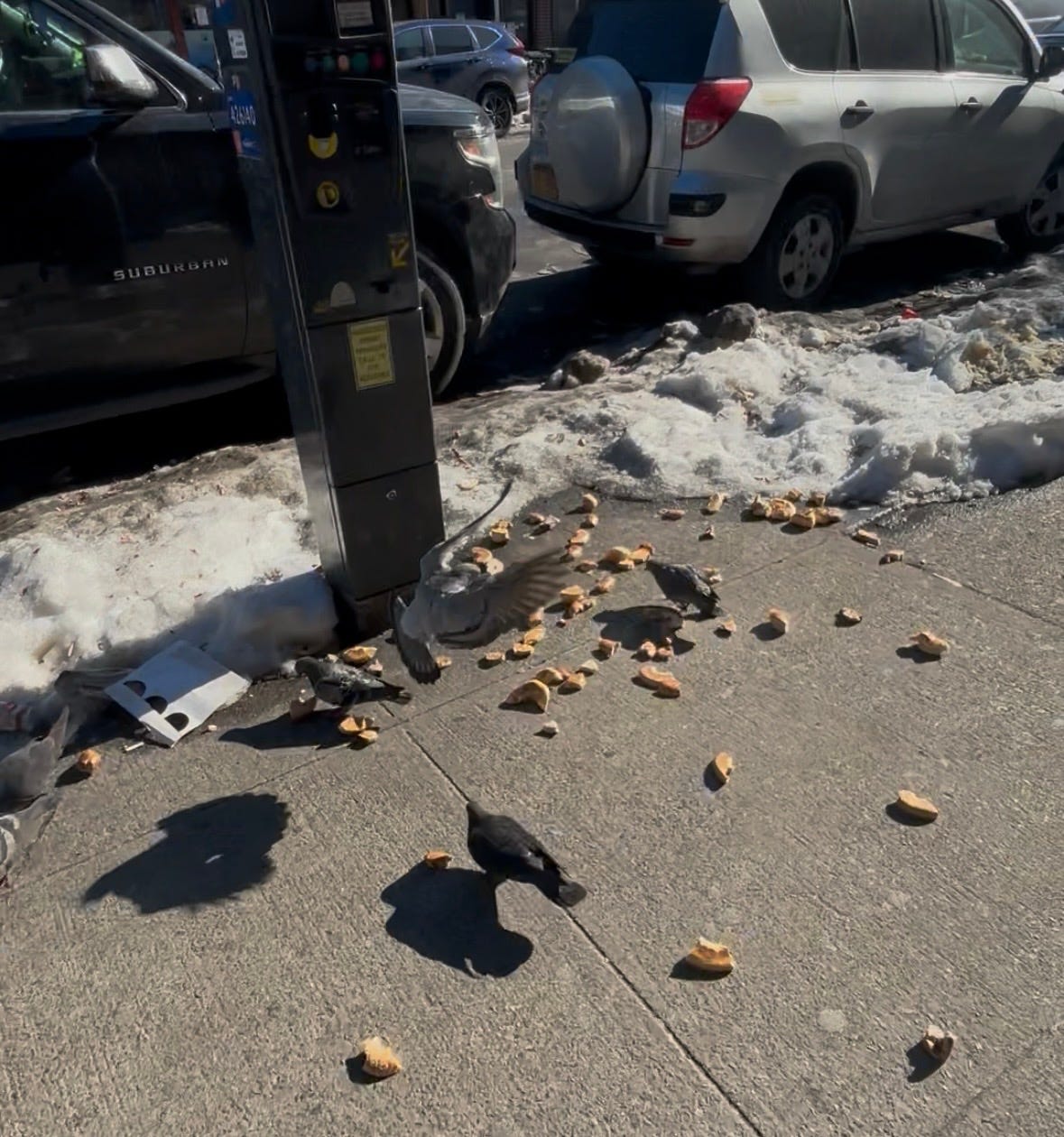 Dodging piles of dirty snow left and right. The dirtiest snow I’ve ever seen with so much dog poop in it! But oh well. If people don’t pick up their dog shit then what am I going to do? ya know.